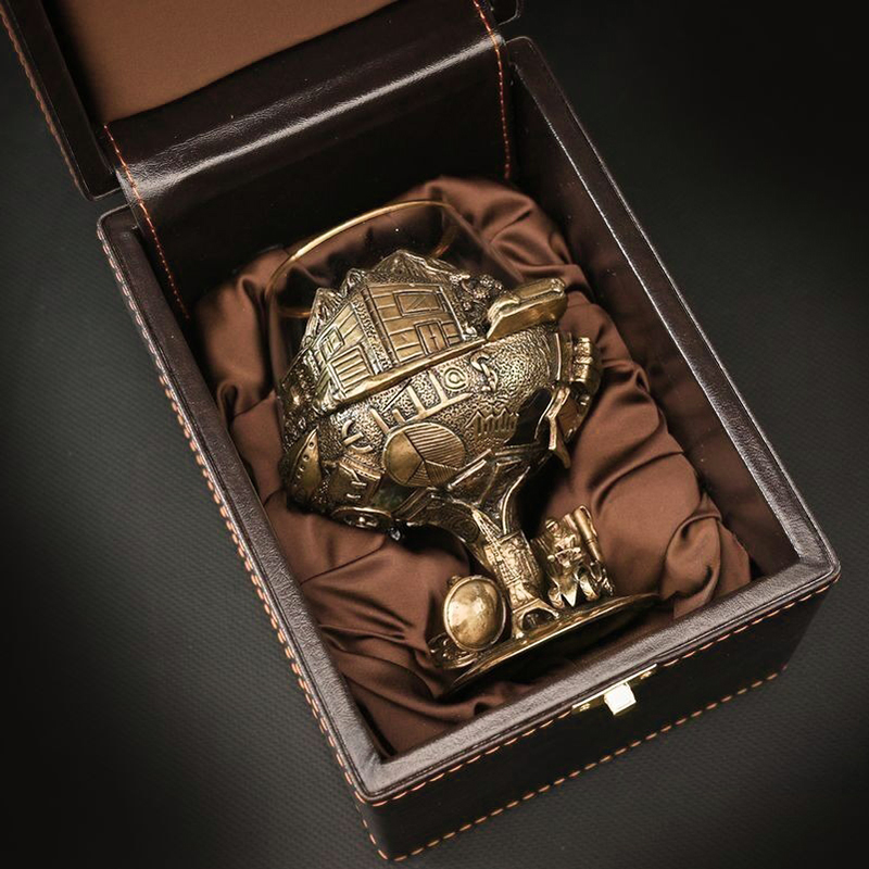 Основание бокала изготовлено методом точного художественного литья. Бокал упакован в презентабельный футляр из экокожи с атласным ложементом.