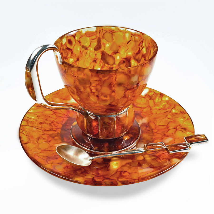 Чайная пара "Ар-деко" произведена из балтийского янтаря по уникальной, единственной в мире технологии, позволяющей максимально сохранить его первозданность. Её суть состоит в спекании отдельных камешков янтаря в единое целое. Именно в спекании, а не в плавке, когда расплавленный до жидкого состояния янтарь прессуется под большим давлением. При спекании кусочки янтаря соединяются между собой только по периметру посредством диффузии (без клеевых составов!), что позволяет полностью сохранить природный цвет, состав и свойства янтаря, а значит, ту неповторимую красоту, за которую этот теплый и живой камень высоко ценят во всем мире. И никаких добавок: как искусственных, так и натуральных!