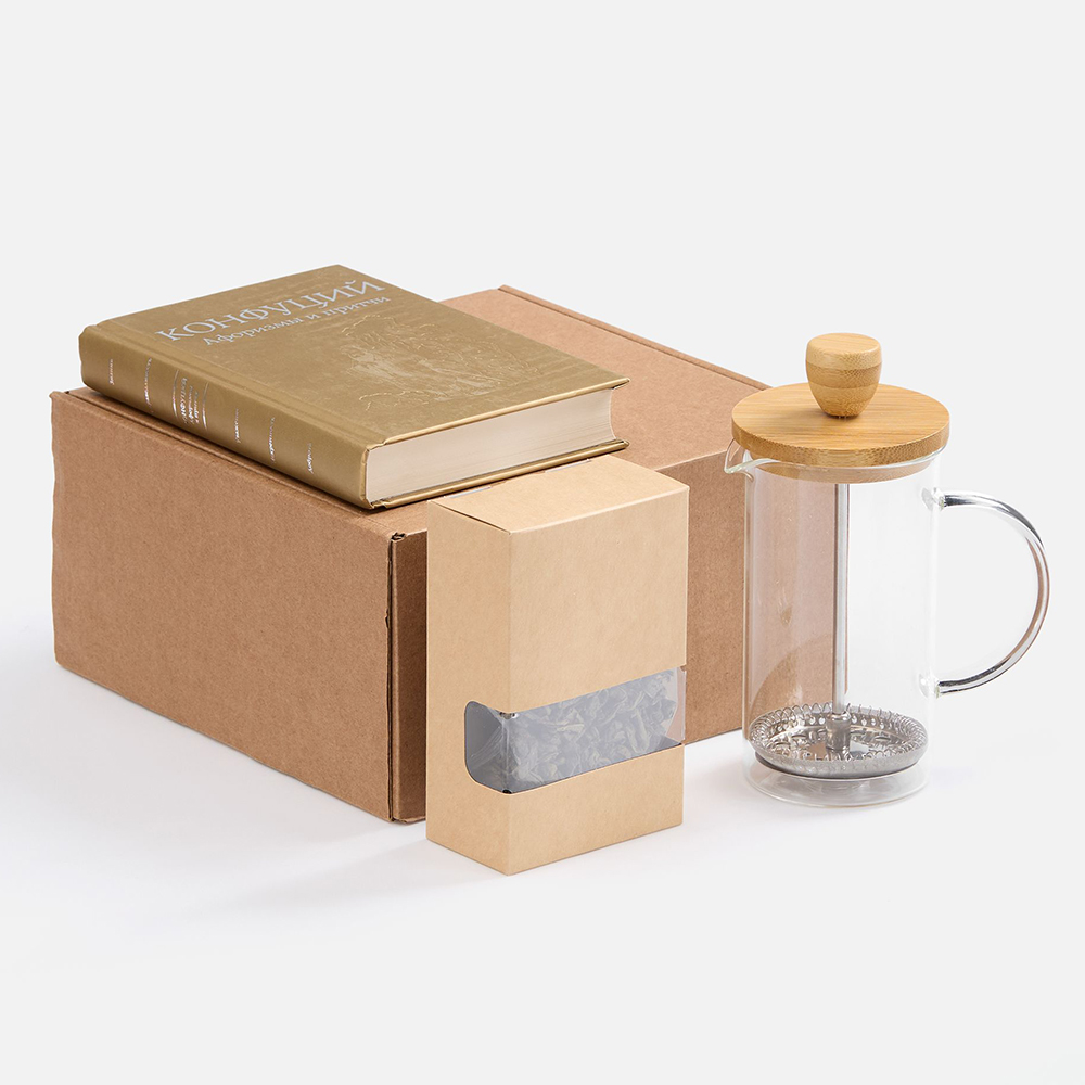 - Чай + френч-пресс из боросиликатного стекла и дерева