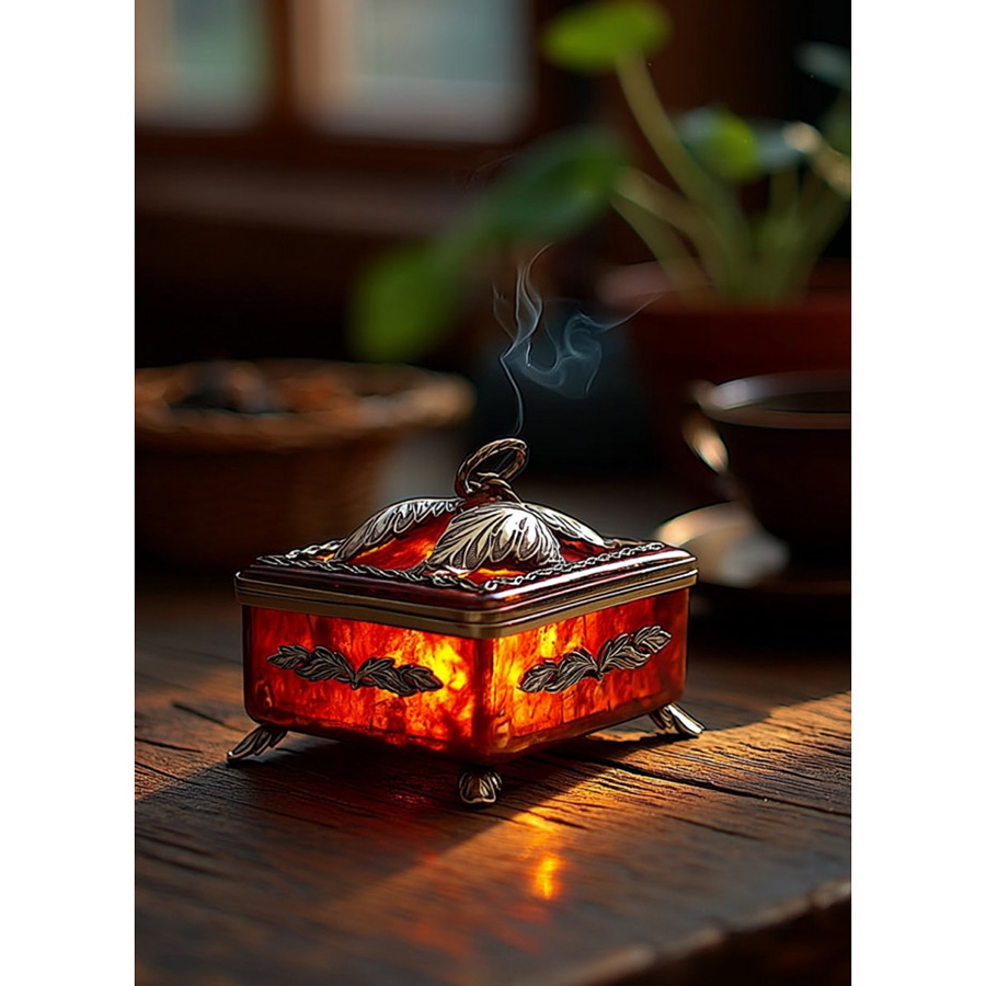 Шкатулка для чая "Пуэр" произведена из балтийского янтаря по уникальной, единственной в мире технологии, позволяющей максимально сохранить его первозданность. Её суть состоит в спекании отдельных камешков янтаря в единое целое. Именно в спекании, а не в плавке, когда расплавленный до жидкого состояния янтарь прессуется под большим давлением. При спекании кусочки янтаря соединяются между собой только по периметру посредством диффузии (без клеевых составов!), что позволяет полностью сохранить природный цвет, состав и свойства янтаря, а значит, ту неповторимую красоту, за которую этот теплый и живой камень высоко ценят во всем мире. И никаких добавок: как искусственных, так и натуральных!