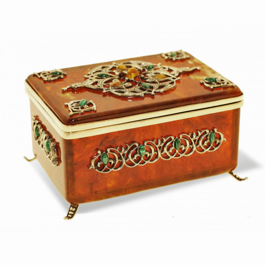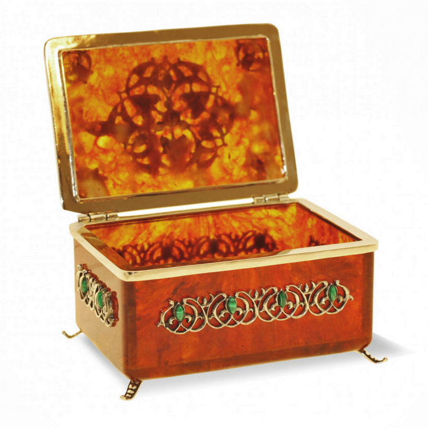 Поистине драгоценный подарок в восточном стиле! Подлинное произведение декоративно-прикладного искусства, сочетающее природное благородство янтаря и филигранную ювелирную работу. Создано для ценителей эксклюзивного дизайна и станет настоящим украшением любой коллекции.