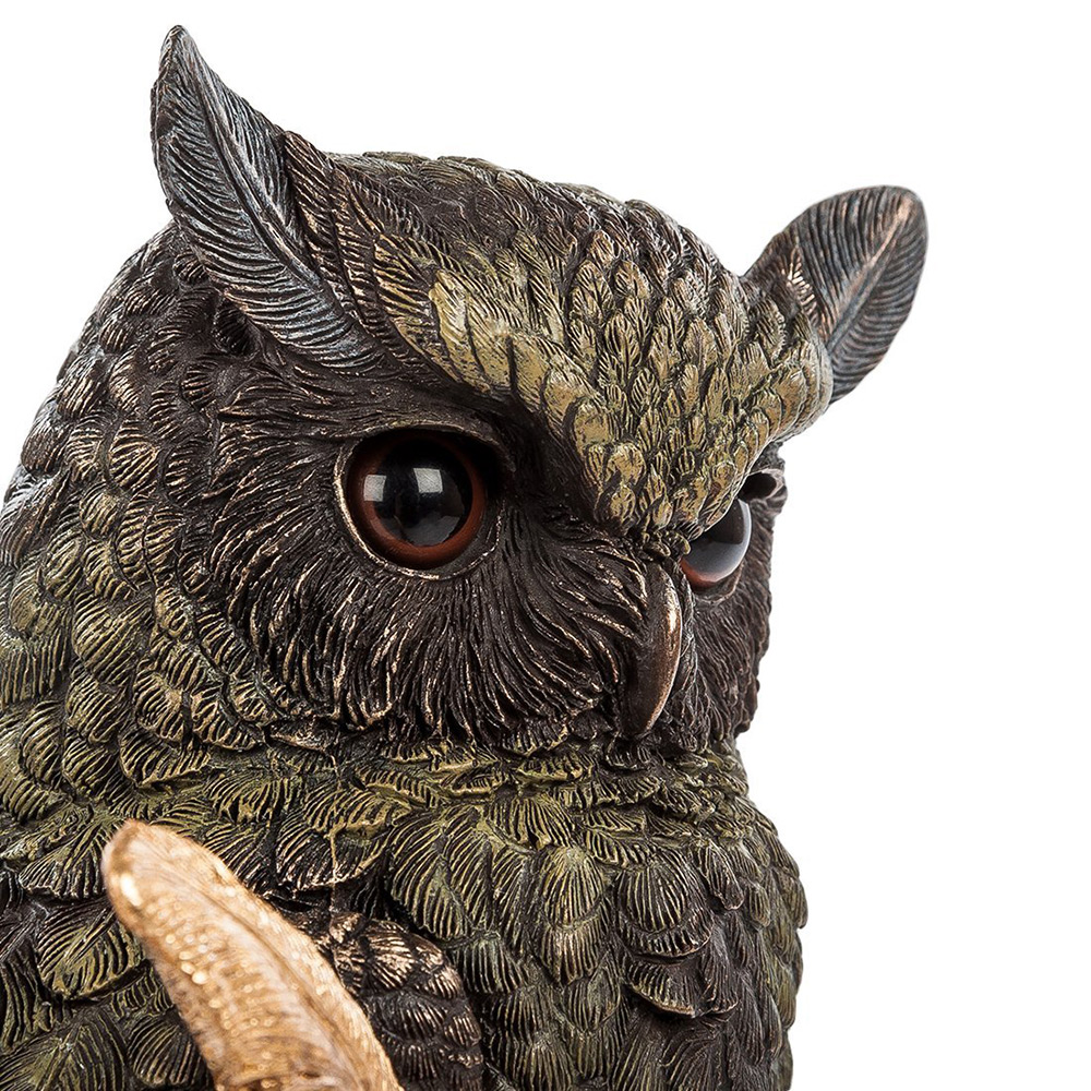 Мудрость и знание – это наиболее известная символика совы, берущая начало в древнегреческих мифах: в них птица неотлучно сопровождала богиню мудрости Афину. А ещё птица считается надежным талисманом от зла и залогом финансового благополучия. Детально проработанная до мельчайшего пёрышка скульптура украсит интерьер и станет идеей для оригинального поздравления.